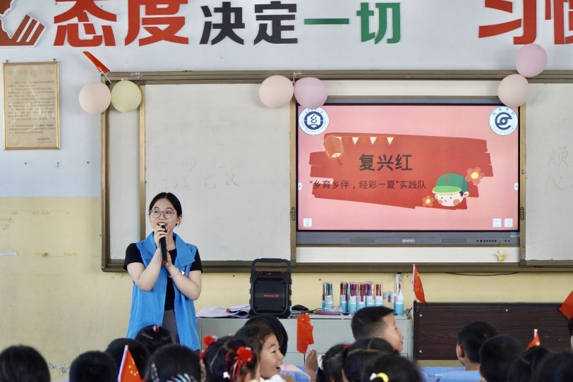 伴随着悠扬的乐曲,一群可爱的孩子正摇动着手中的五星红旗,歌唱《唱支山歌给党听》……这一幕,发生在建始县高坪镇望坪希望小学一间正在上课的教室里。6月30日,为庆祝中国共产党成立102周年, 弘扬伟大建党精神,传承优秀红色基因,增强中小学生爱党爱国之情,太阳集团网tyc9728 “乡遇乡伴,‘经’彩一‘夏’”暑期志愿服务队在该小学组织开展“复兴红”主题教育思政课。