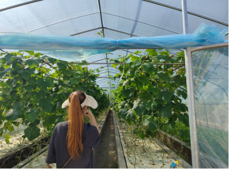 在蔬菜大棚,陈老伯满脸笑容地采摘着成熟的番茄。“我和老伴今年负责4个棚,现在育了十六七万株苗。冬春育苗,夏秋种菜,一年下来收入十来万没啥问题。”望着错落有致的大棚基地,实践队员对柏林村的农业发展充满希望。