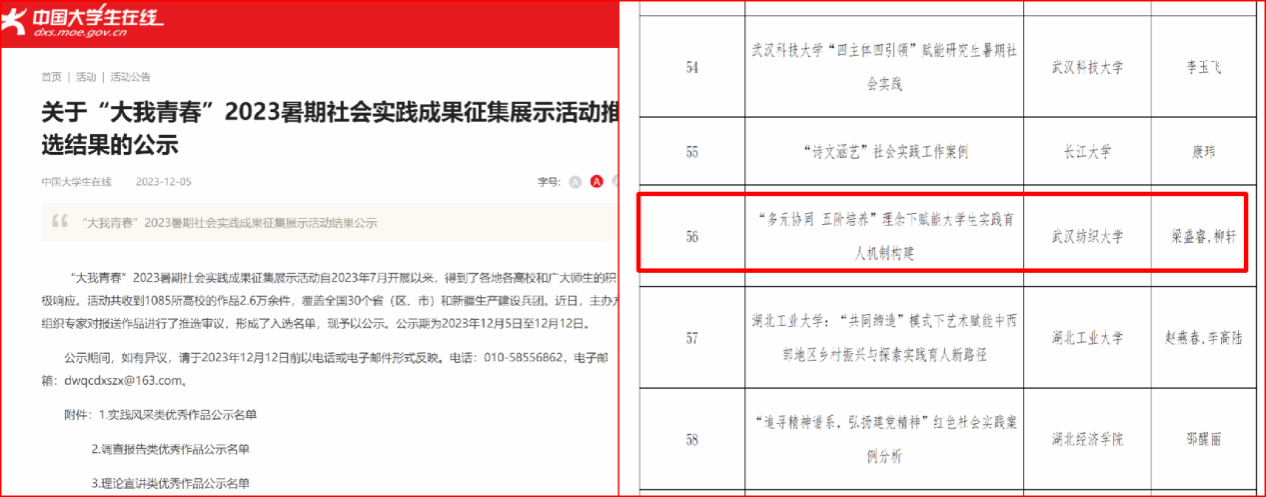 近日,太阳成tyc9728集团“青春护农”实践团队分别获批教育部中国大学生在线“大我青春”2023年暑期社会实践优秀工作案例、湖北省2023年“三下乡”社会实践优秀团队两项荣誉。