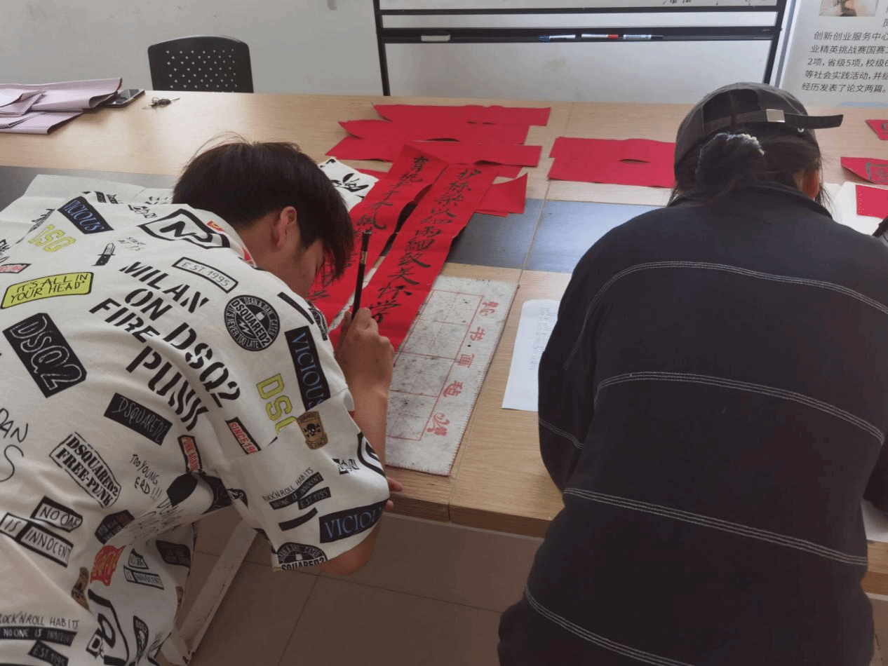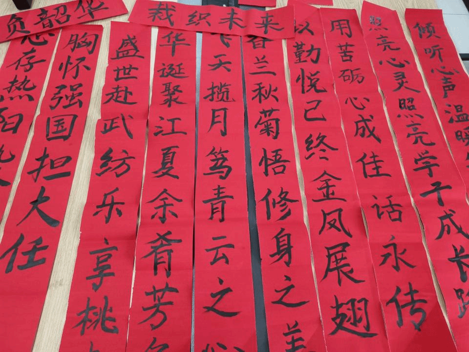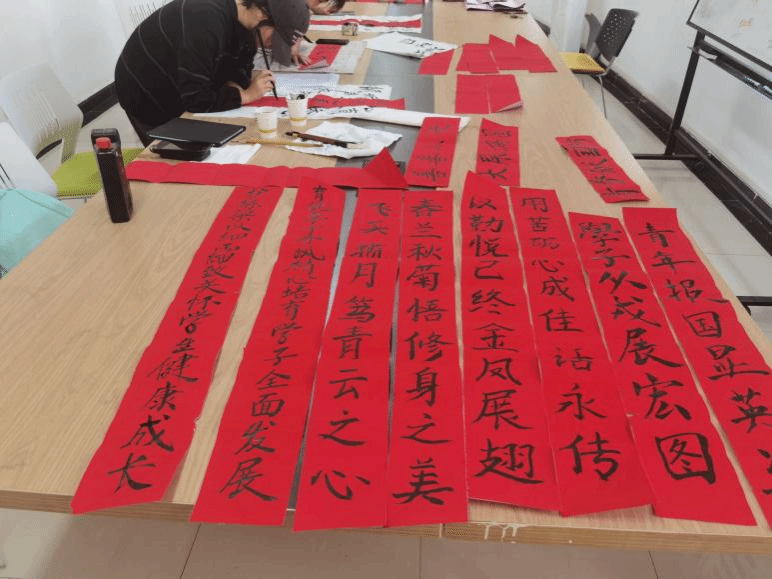 看着由自己亲手写好的楹联,同学们个个眉开眼笑,热切地将楹联张贴在“一站式”学生社区,用一抹抹红色装点学生社区,为寝室换上“新衣”。此次撰写楹联,使同学们深切感受到了中华优秀传统文化独特的魅力,更加坚定了其将中华优秀传统文化传承下来的决心。