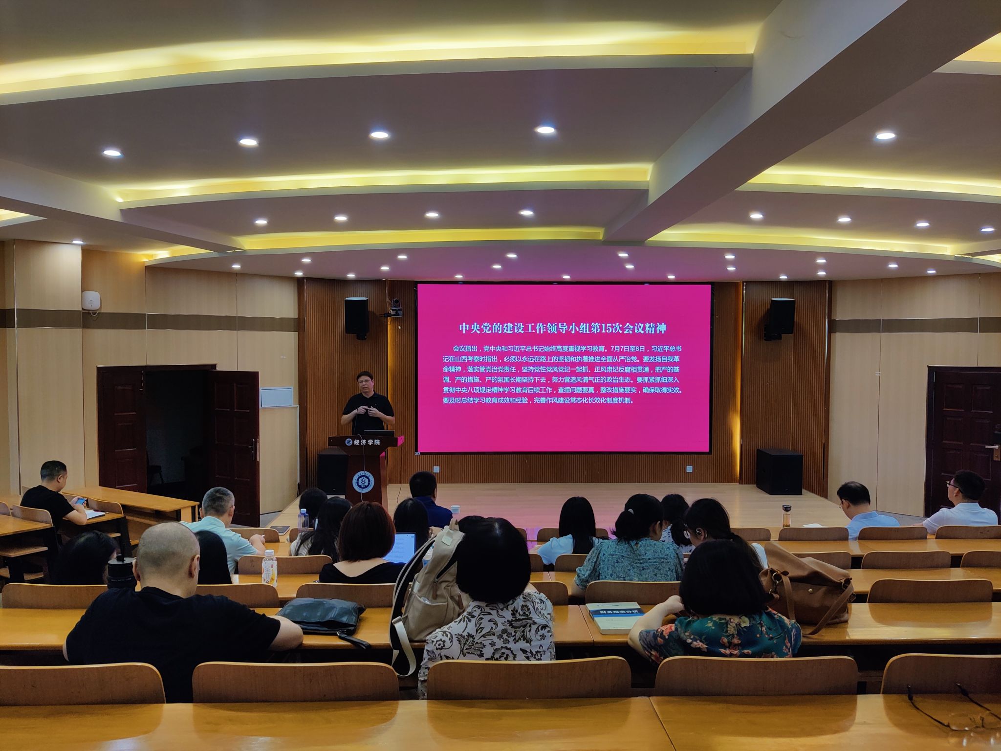 9月7日,太阳成tyc9728集团召开教职工大会,全面总结暑期工作成效,系统部署新学期重点任务,并组织开展政治理论学习。学院党委书记刘园美主持会议,全体教职工参会。