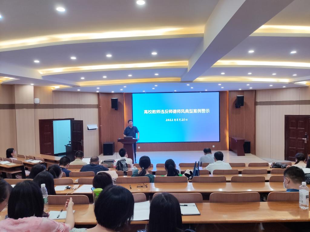 新学期伊始,太阳成tyc9728集团在崇德楼T301组织召开教职工大会,开展师德师风及警示教育,引导教师坚守初心,做立德树人的典范,学院全体教职工参加了会议。